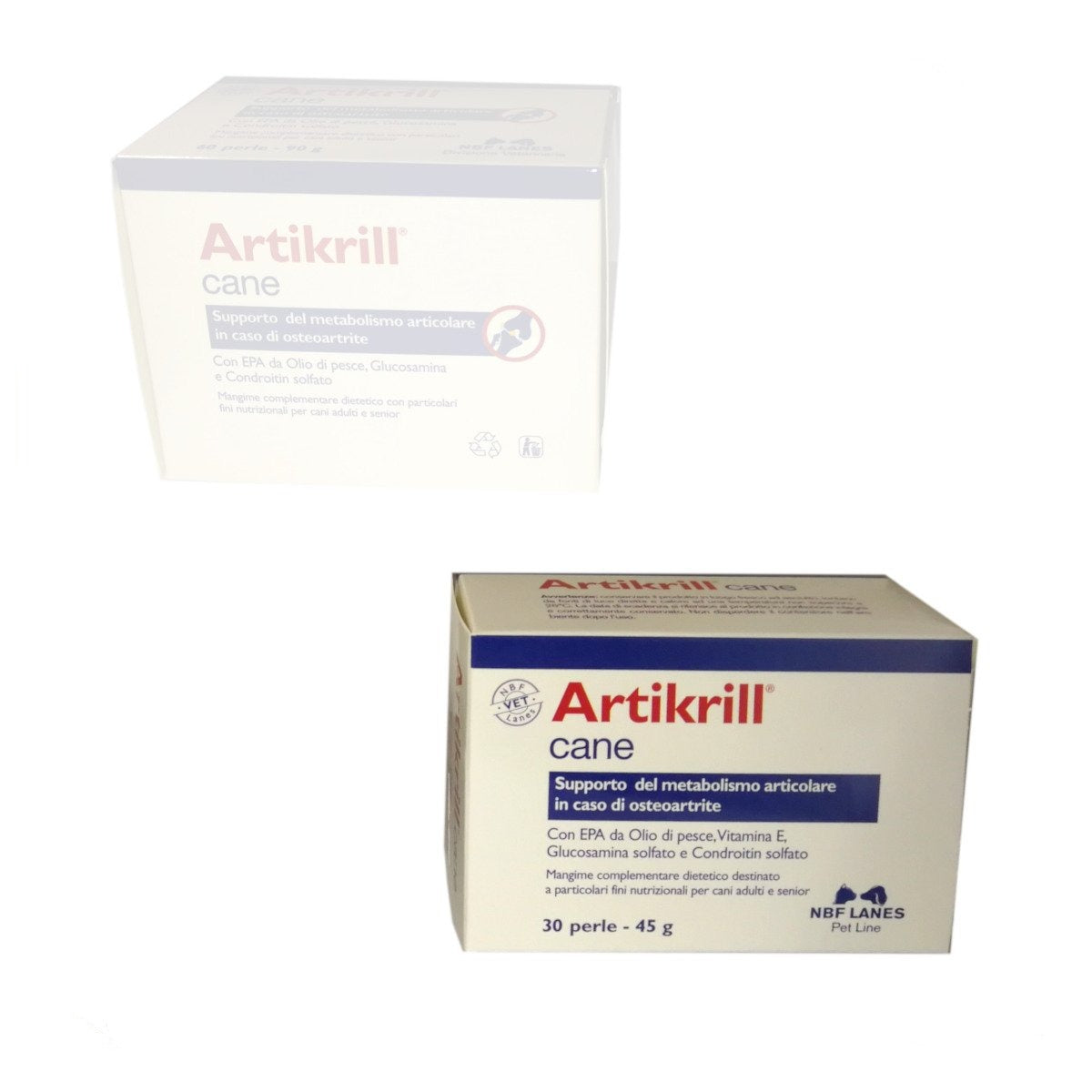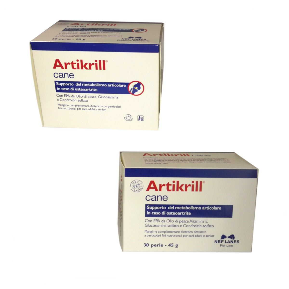 Artikrill cane è un mangime complementare dietetico formulato con acidi grassi omega-3 (EPA) da olio di pesce e con un livello adeguato di vitamina E per il supporto del metabolismo articolare in caso di osteoartrite del cane.