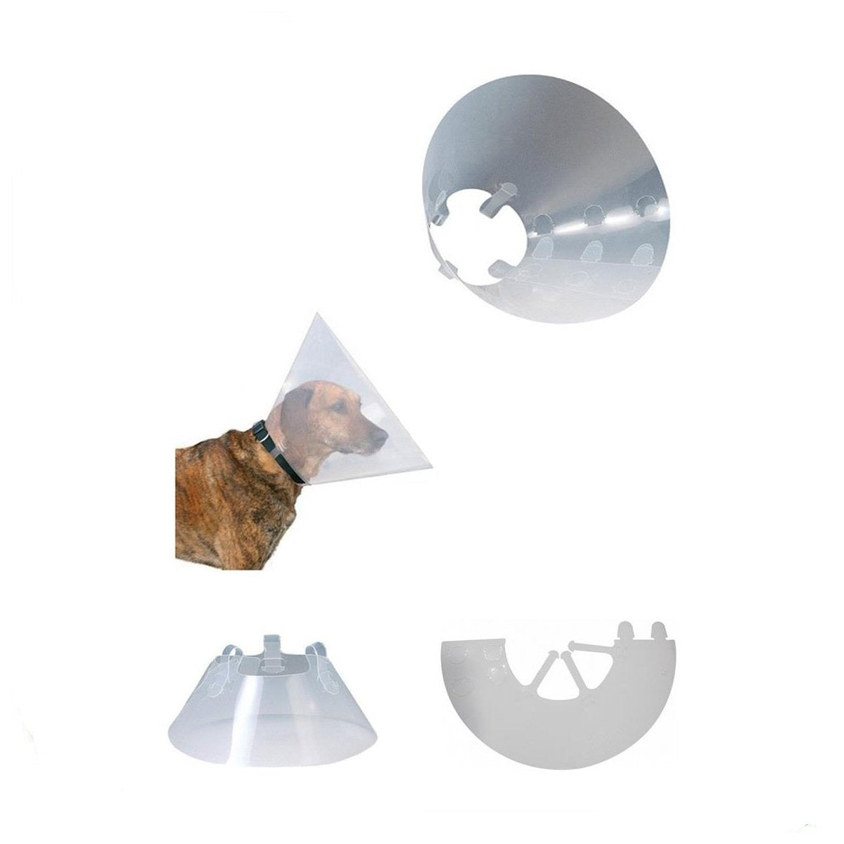 Collare elisabettiano per cani o gatti. Impedisce all'animale di raggiungere ferite o fasciature compromettendo la guarigione. In polietilene flessibile e robusto