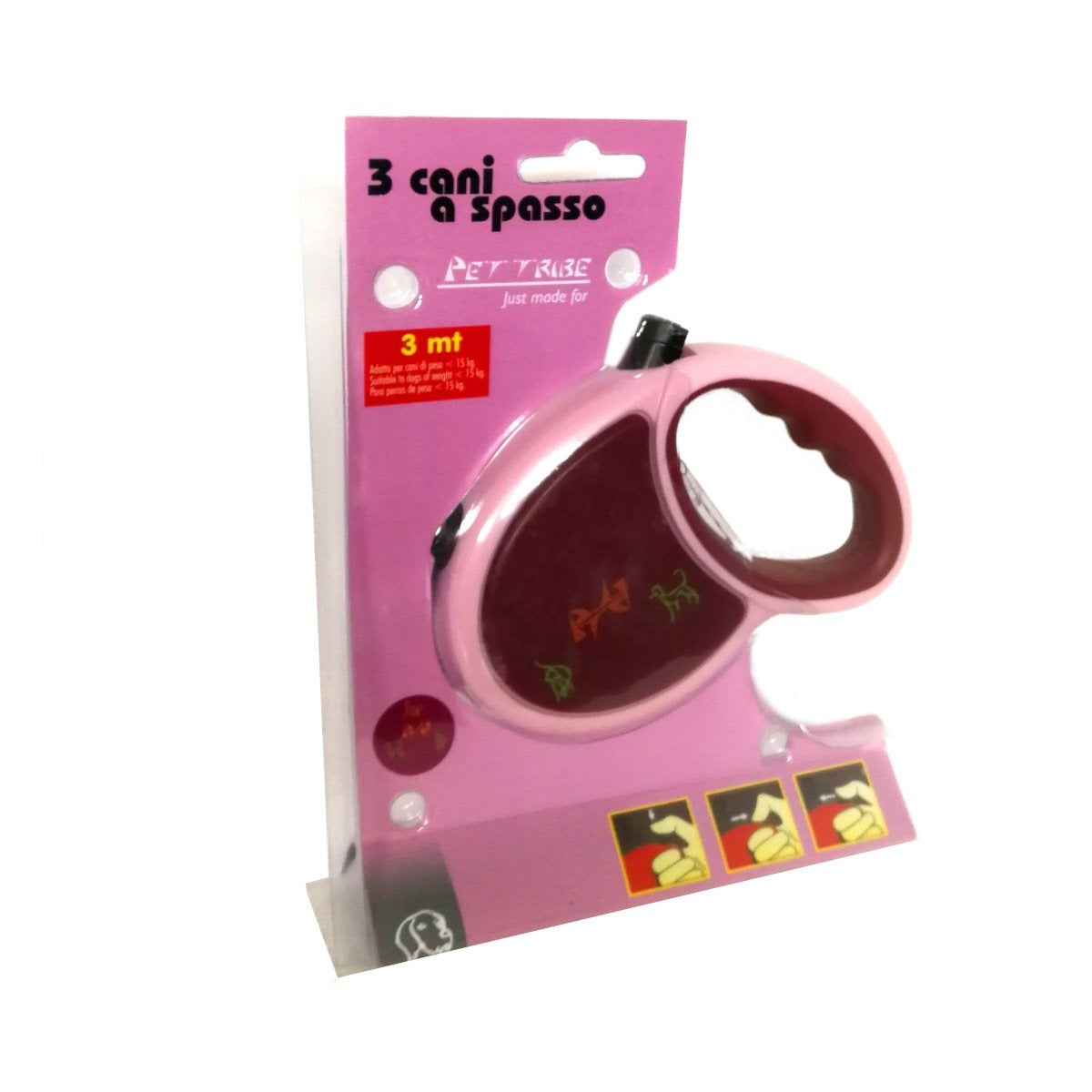Guinzaglio estensibile 3 cani a spasso, 3mt. nastro bordeux\rosa
