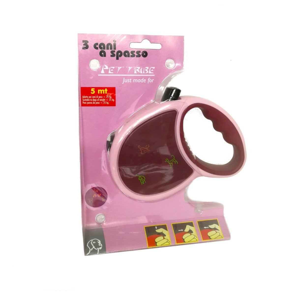 Guinzaglio estensibile 3 cani a spasso, 5mt. nastro bordeux\rosa