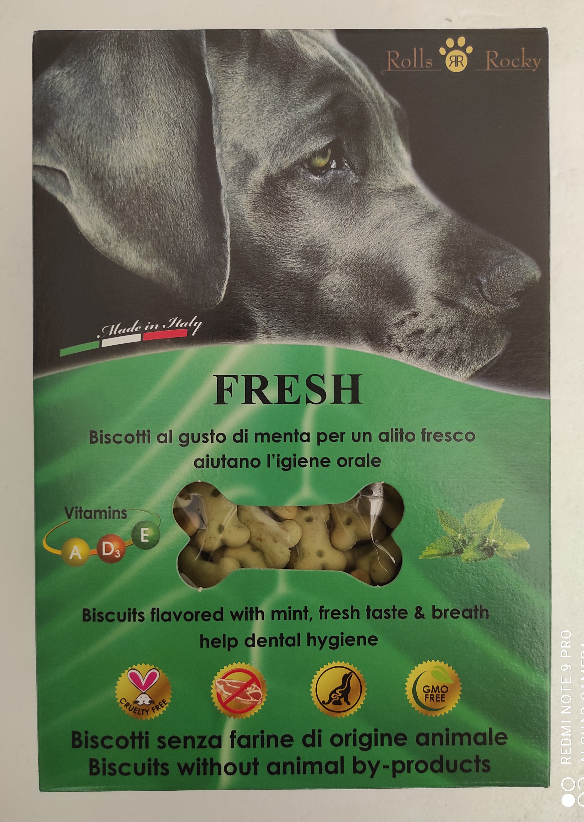 Biscotti al gusto menta, favoriscono un alito fresco ed aiutano l'igiene orale.